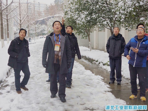 新闻网讯(记者 陶亿)受北方冷空气持续南下影响,本周以来,我市遭受入冬以来强度最大、范围最广的持续雨雪天气,为有效防范低温雨雪天气对学校安全的影响,1月5日下午,院党委书记魏文芳、党委副书记周元国率院办、保卫处、学工处、后勤管理与服务中心等相关部门负责人一行在校内开展了校园安全及保障服务专项检查。